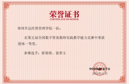 在本次比赛中,我院共24名学生组成6支队伍于2023年11月22日至24日参加“第九届OCALE全国跨境电商创新创业能力大赛(秋季赛)”,霍倩倩、白朋飞、叶宝银、马巧丽、刘玲芳、马绍华、裴香玉共7位教师担任竞赛指导教师,6支参赛队伍分别获得特等奖一名,一等奖四名,二等奖一名的佳绩。另外霍倩倩和裴香玉老师组成一支队伍于2023年11月25日至26日参加“第五届全国数字贸易教师实践教学能力竞赛”,获得一等奖。