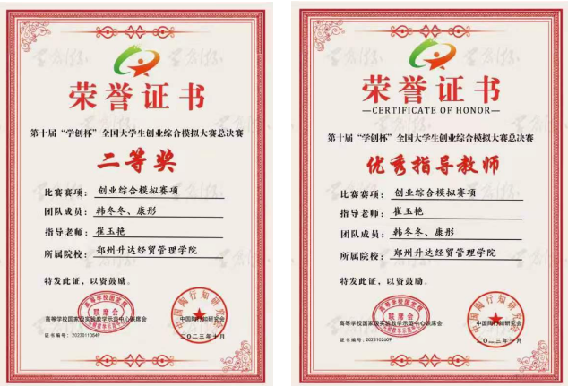 本次大赛旨在通过模拟创业过程,提高大学生的创新创业能力和实践能力。比赛分为初赛、复赛和决赛三个阶段,涵盖了创业计划书撰写、软件模拟对抗等环节。在激烈的角逐中,我校由崔玉艳老师带领的两支队伍,本科组崔栋军、李明阳、杨科达以及专科组韩冬冬、康彤,分别荣获本科组国赛二等奖和专科组国赛二等奖。这不仅是对我校创新创业教育的肯定,也是对我校学子辛勤努力的褒奖。