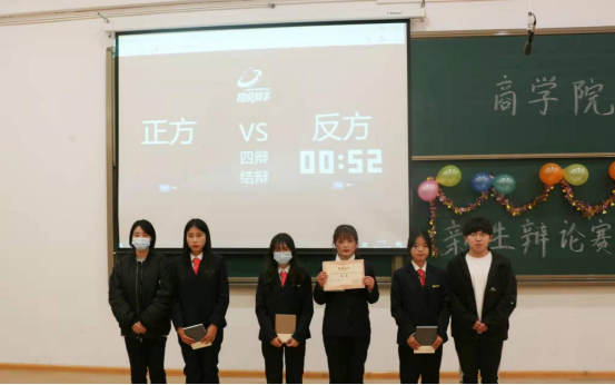 为丰富学生的课余生活,提高学生思辨能力和语言表达能力,商学院于12月9日18:30在2号教学楼116举行“新生杯”辩论赛决赛。商学院团委副书记白玉洁、吴俊娇、学生会副主席付恒宇、翟曼曼、19级校辩论队队长张艺华、副队长任万奇、19级商学院辩论队队长侯飞帆及21级学生代表参加了此次辩论赛决赛。