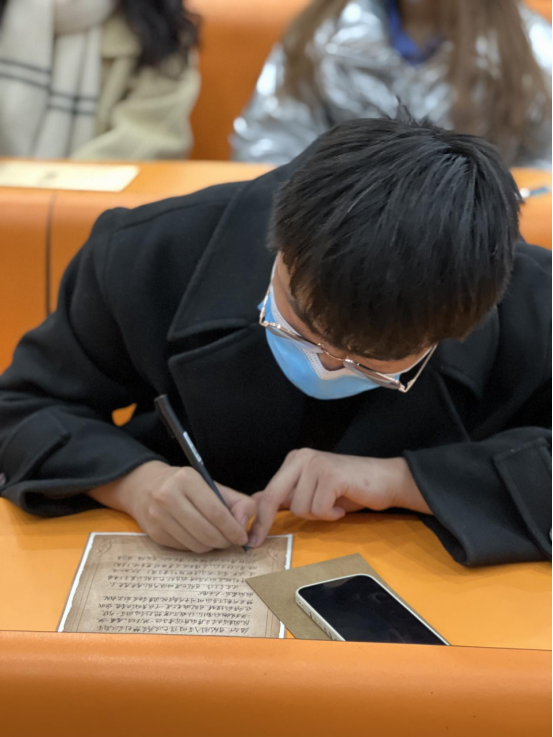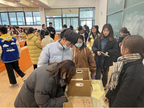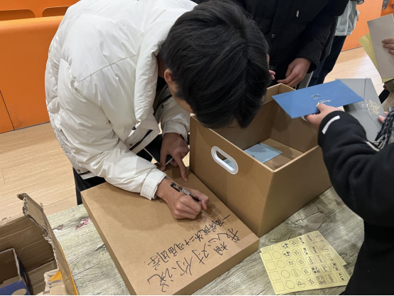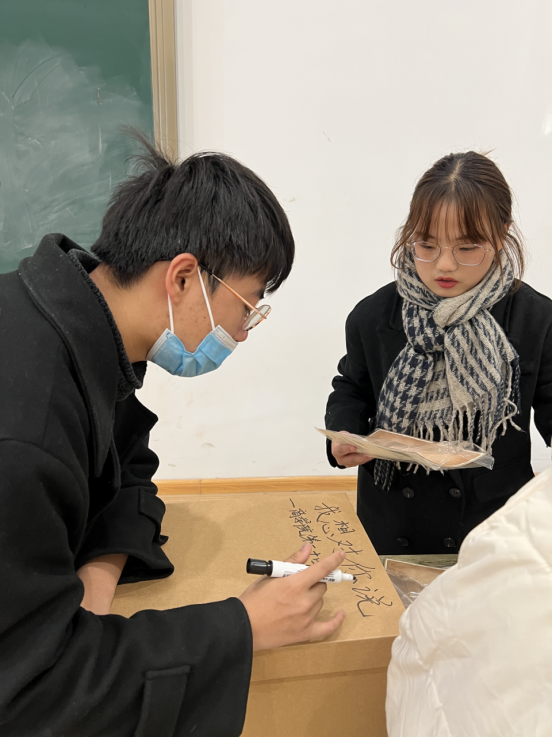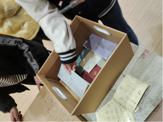 时光匆匆,转眼间一学期就要结束,你想对明年的你说些什么呢?对将要到来的2022年有什么期待呢?每位同学们在纸上认真撰写书信,思考自己未来的目标,设想自己与一年后的自己对话,每位同学都希望一年后自己打开信封时能有所收获,不辜负当时的梦想。同学们撰写完成后装进各部门部长发的信封中,并以部门为单位,将自己的信封放到信箱中,在一旁的签名处留下自己的名字。