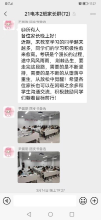 活动开始后,两个班召开班会动员同学们走出寝室、走进教室,明确制定自己的大目标和阶段小目标,并按照每一位同学的阶段计划进行开展。每一位班委负责一个寝室,用自己的带头作用带动他人,辅导员负责监督大家计划的执行情况,并不断鼓励同学们。本次活动的开展得到了家长的强烈支持,经过家校合作努力,参加活动同学普遍觉得生活充实,学习能力进步。21电升本有近50名同学愿意考研,并签订班级考研战书,21电本2班有大半同学能每天课余时间走进教室1小时以上。
