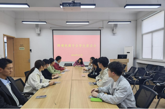 2024年11月15日中午,商学院315会议室迎来了一场别开生面的学生代表座谈会。此次座谈会聚焦于跨境电子商务专业,旨在倾听学生们的心声与建议,共同推动专业教学的持续优化与发展。
