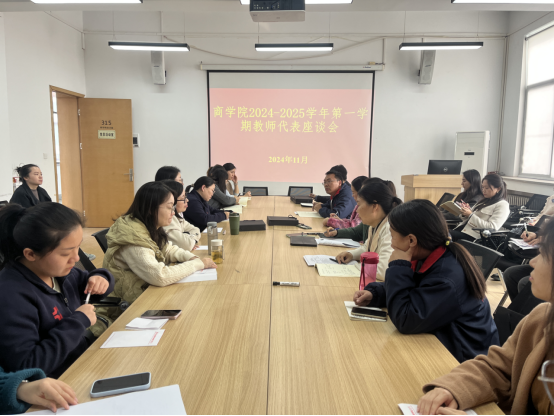 11月14日下午,商学院在教学楼2号楼315会议室召开2024-2025学年第一学期教师代表座谈会,院长白朋飞、教学秘书马巧丽、教研室主任及教师代表参加了此次会议。此次会议旨在提升教师群体的凝聚力、提高学院的教育质量。