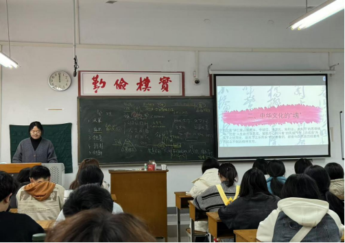 紧接着,团支书从中华文化的“根”和“魂”入手,在其独特的价值观和民族精神上进行分析,使同学们了解到在当今世界百年未有之大变局中,坚定文化自信,坚持继承和发展中华优秀传统文化,正是驻“根”守“魂”的体现。