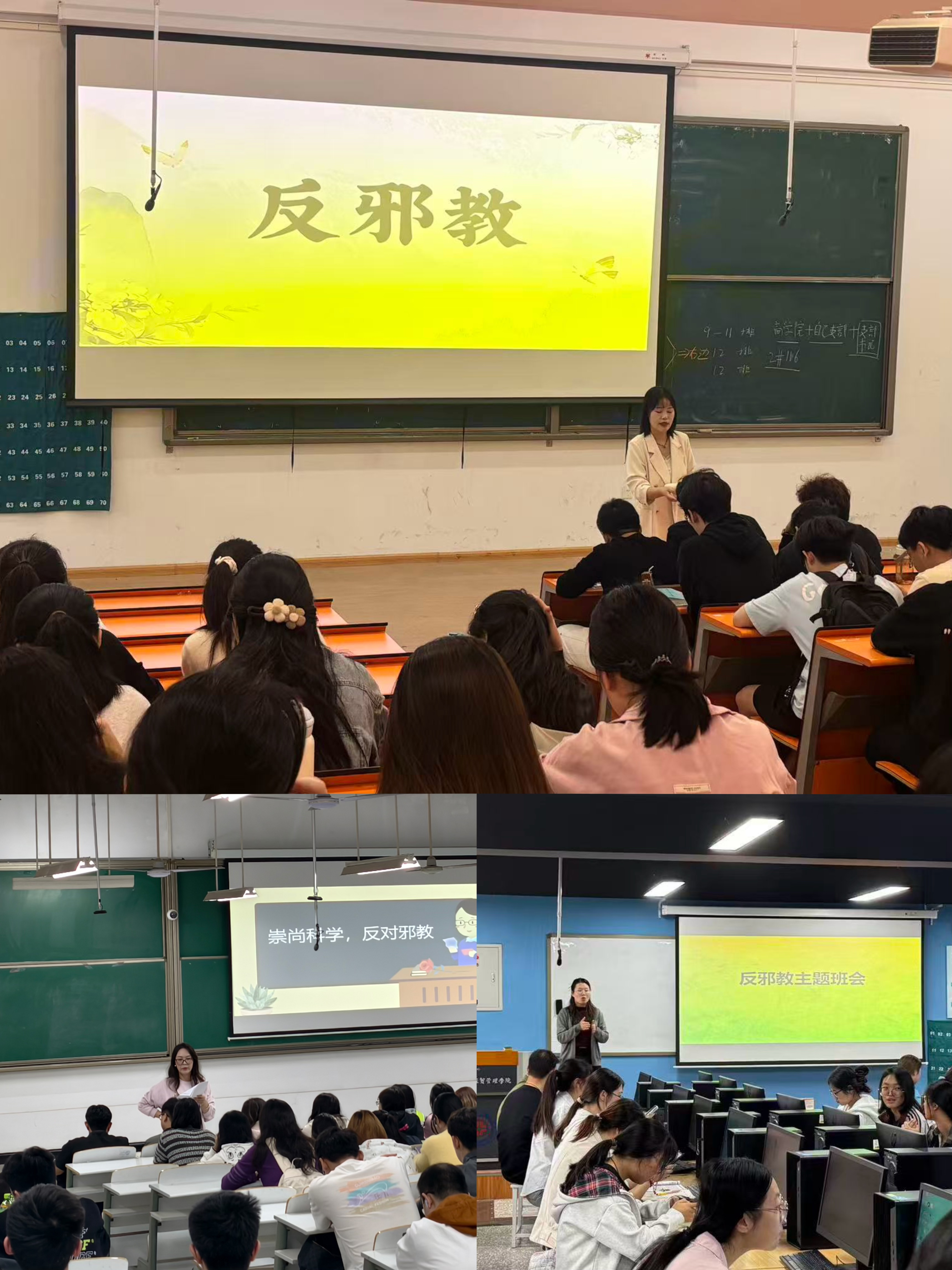 为切实筑牢新生思想防线,引导青年学生树立“崇尚科学、反对邪教”的坚定信念,自2025年9月8日起,商学院精心策划、稳步推进,圆满完成2025级新生“反邪第一课”系列教育活动,为新生成长成才营造安全、健康、文明的校园环境。
