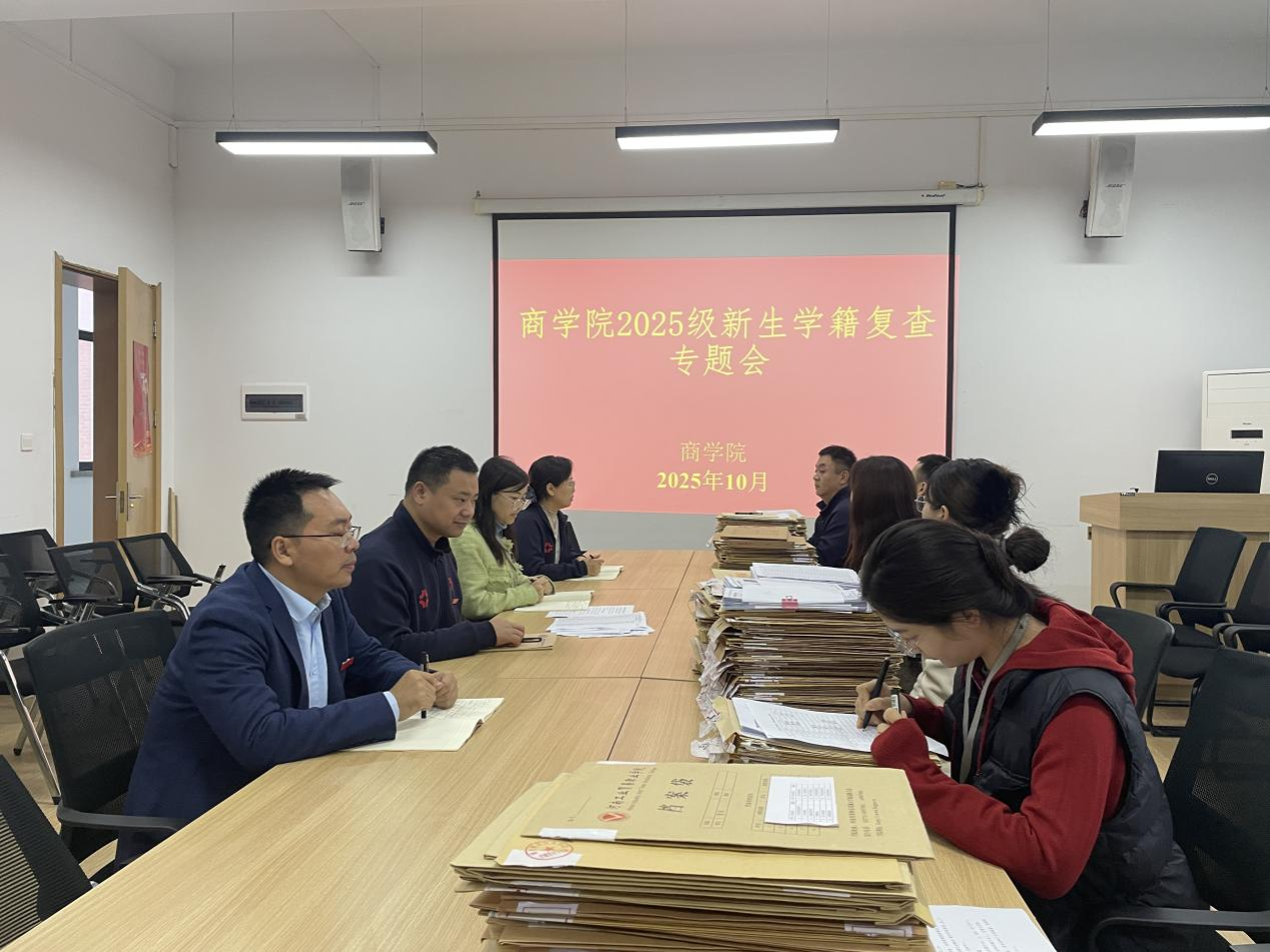 为进一步加强学籍管理工作,确保学生学籍信息真实准确,切实维护招生公平公正,保障学生合法权益,商学院于10月17日在教学楼2号楼315会议室召开2025级新生学籍复查专题会。院党委书记郭峰、院长白朋飞、院党委副书记郗艳花、教学秘书马巧丽和全体2025级辅导员参加了此次会议,会议由教学秘书马巧丽主持。