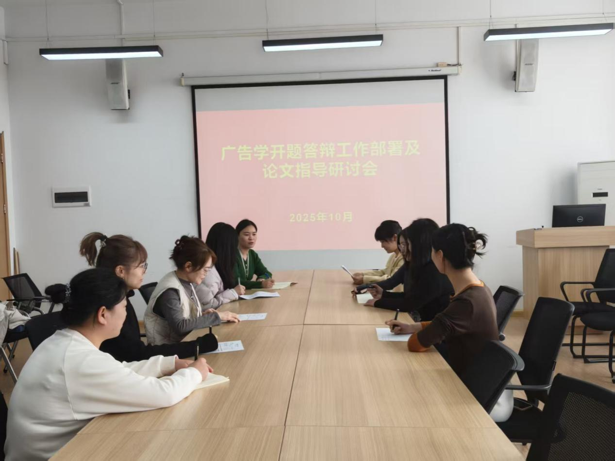 2025年10月9日,商学院广告学专业2026届毕业设计开题答辩布置交流会如期举行。此次活动旨围绕教学与毕业设计两大核心任务,组织全体教师系统部署2026届毕业设计开题答辩工作,确保各项工作有序推进、责任到人。