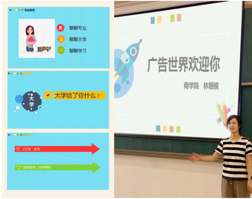 2023年9月18日中午,商学院广告学教研室召开新生入学教育,教研室主任林娅楠与全体2023级广告学本科生共同分享关于大学、专业和学习的感受,帮助新生更快地适应环境,迎接崭新大学生活。林老师首先为同学们介绍了...[详细]