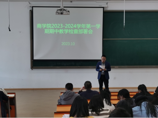10月26日下午,商学院在教学二号楼116教室召开2023-2024学年第一学期期中教学检查部署会,院长白朋飞、教学秘书马巧丽及全体教师参加此次会议。根据教务处《2023-2024学年第一学期期中教学检查通知》的相关要求,...[详细]