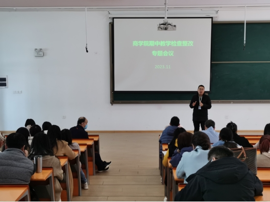 11月27日中午,商学院在教学楼2号楼116教室召开期中教学检查整改专题会议,院长白朋飞、教学秘书马巧丽及全体教师参加此次会议。会议开始,白院长向全体参会人员通告了此次期中教学检查的结果。接下来,白院长表...[详细]