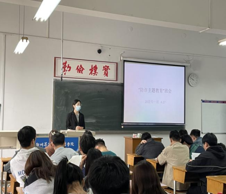 为进一步提高我院学生电信诈骗的防范意识,保护同学们的财产安全,2022年4月28日,商学院辅导员积极开展“防范电信诈骗,加强防范意识”的主题班会。 本次宣传教育活动采取主题班会和视频观看相结合的方式,向广...[详细]