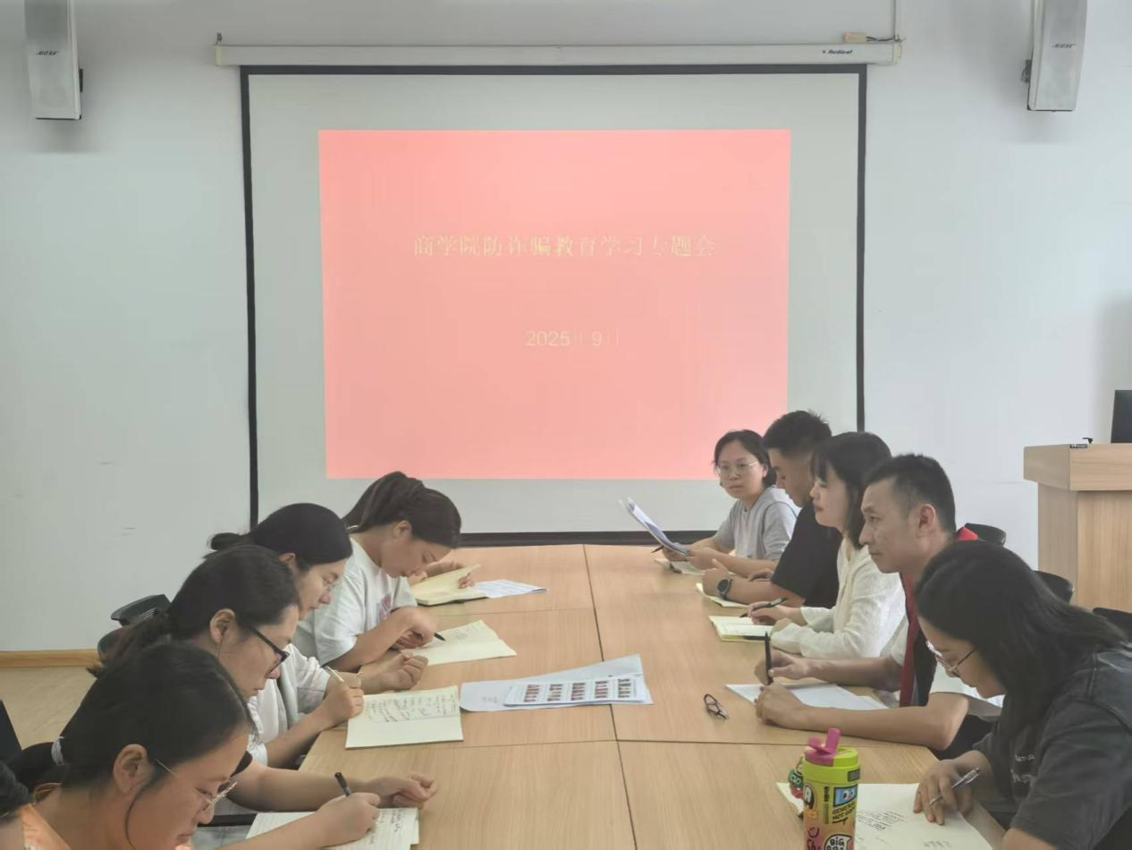 为进一步提升我院全体师生的防诈骗意识和识骗反诈能力,有效遏制校园诈骗案件发生,9月16日,商学院在2-315会议室召开防诈骗教育学习专题会。院党委副书记郗艳花及全体辅导员参会,会议由院党委副书记郗艳花主持...[详细]